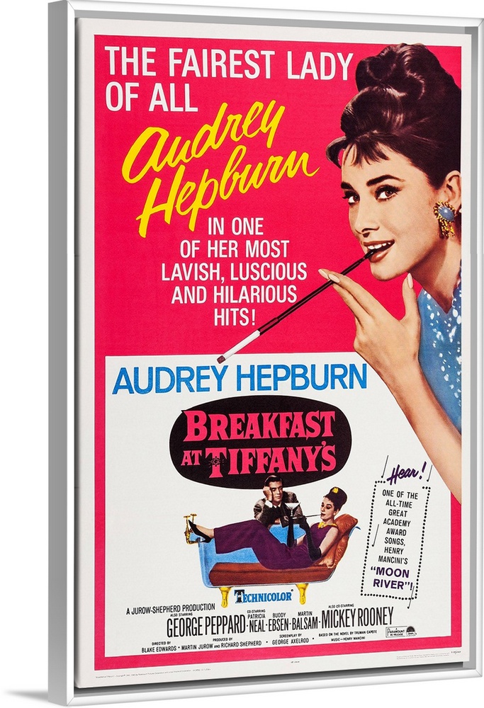 <p>BREAKFAST AT TIFFANY'S, US poster art, top right: Audrey Hepburn, bottom from top: George Peppard, Audrey Hepburn, 1961.</p>