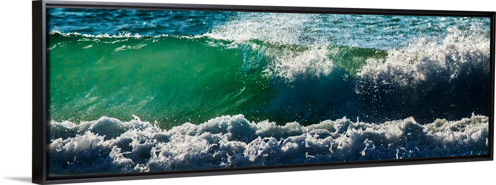 <p>Panoramic photograph of an ocean wave.</p>