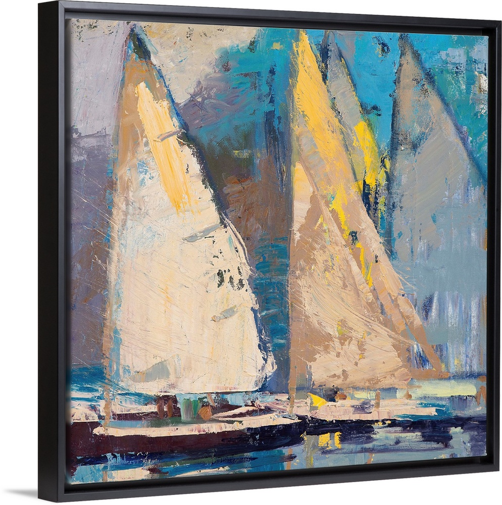 <p>A contemporary coastal themed painting of sailboats in a harbor.</p>