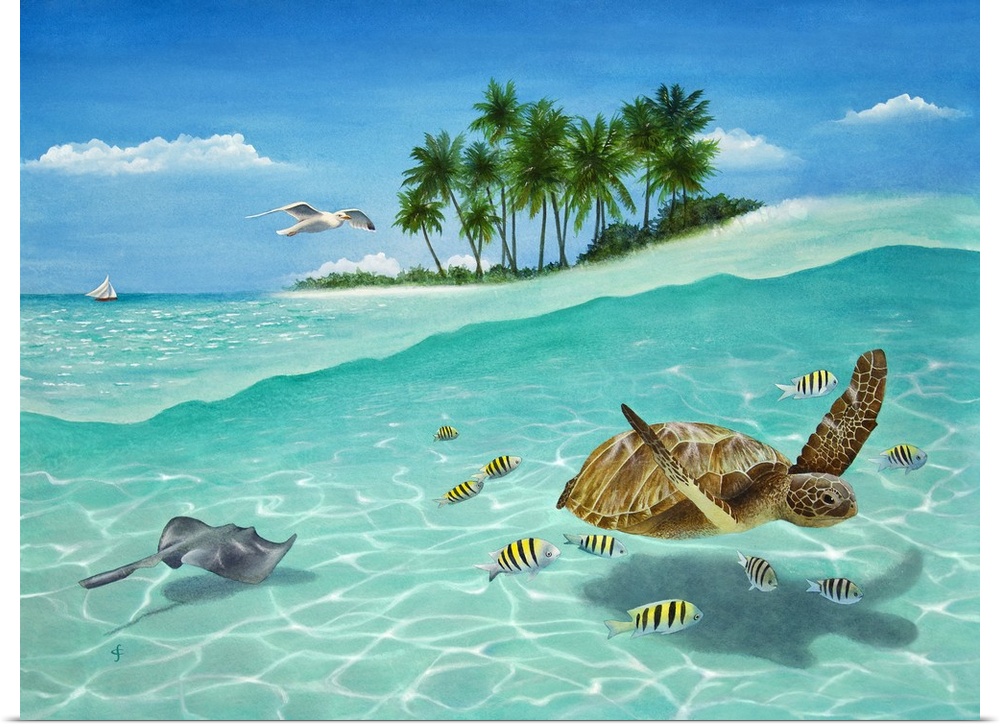 Art Blue Wall Art Contemporary Art Wildlife Painting Carolyn Steele Watercolor Wildlife Marine Life Turtle