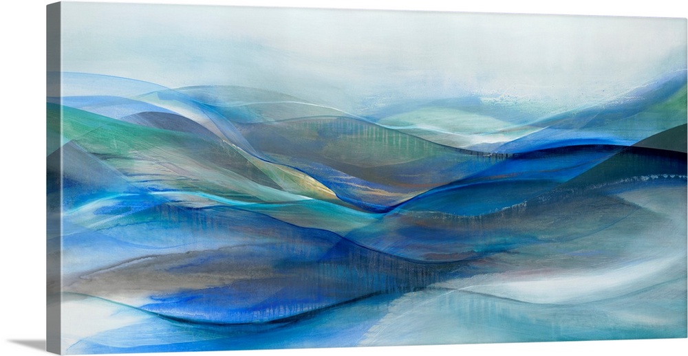 <p>Abstract painting featuring serene, layered waves of blue, green, and turquoise, evoking a tranquil, flowing landscape or seascape. Calming and contemporary.</p>