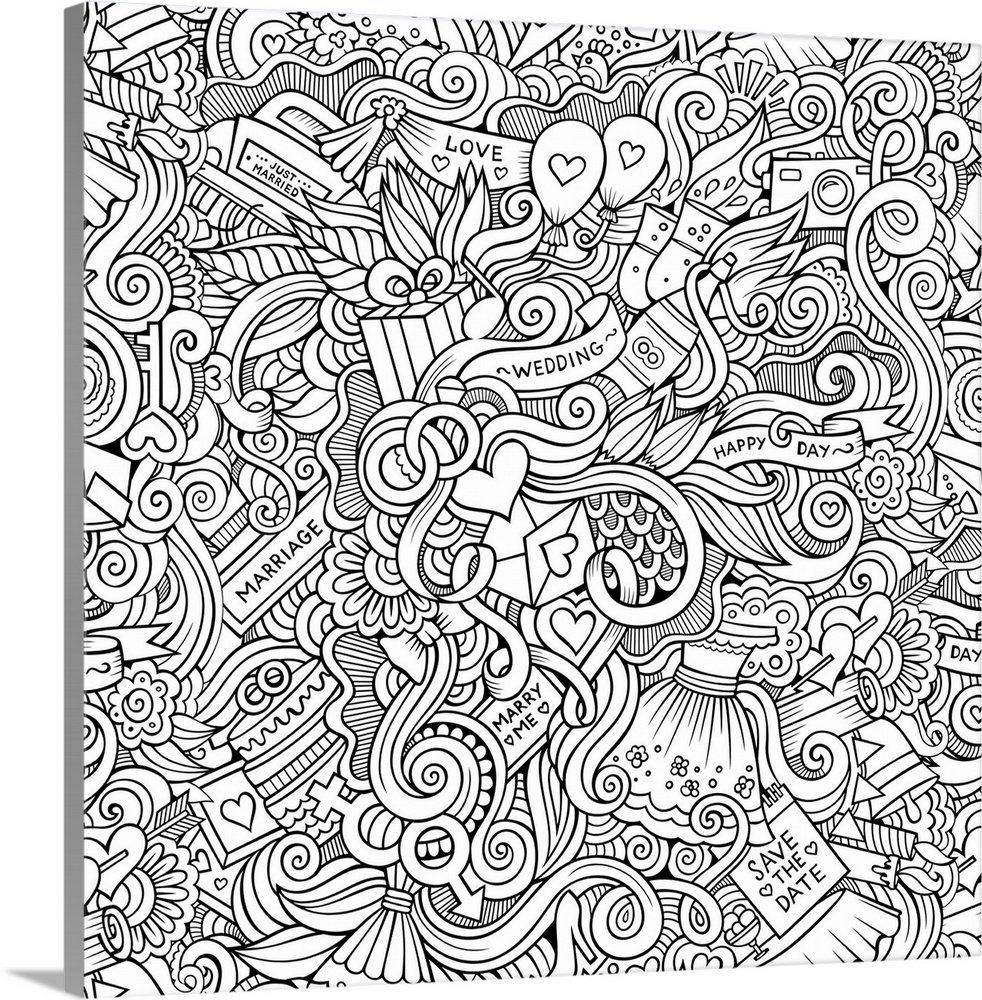 <p>A series of wedding-themed objects, such as cake, rings, and hearts. Perfect for Coloring Canvas.</p>