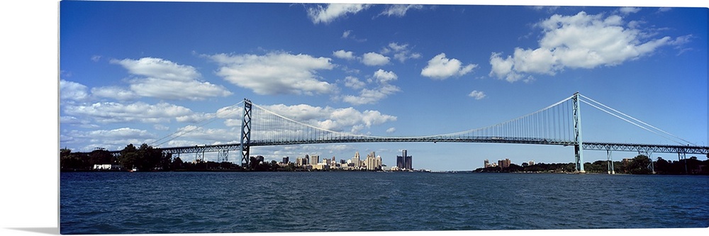 <p>Bridge across a river, Ambassador Bridge, Detroit River, Detroit, Wayne County, Michigan, USA</p>