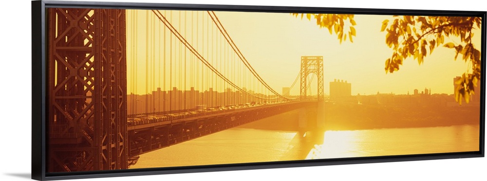 <p>Panorama photograph taken of the George Washington bridge during sun down which gives the picture a golden hue.</p>