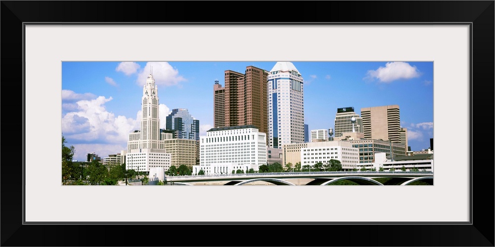 <p>Bridge across the Scioto River with skyscrapers in the background, Columbus, Ohio, USA</p>
