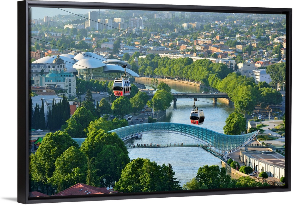 <p>Bridge of Peace and the Mtkvari river. The famous Cable Car above. Tbilisi, Georgia. Caucasus.</p>