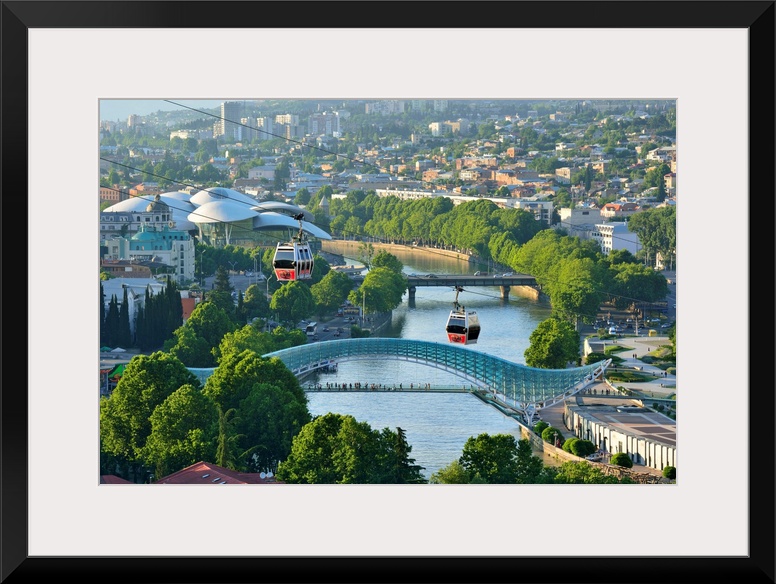 <p>Bridge of Peace and the Mtkvari river. The famous Cable Car above. Tbilisi, Georgia. Caucasus.</p>