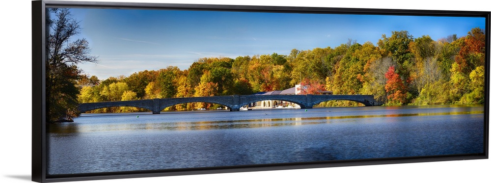 <p>A bridge over a lake in New Jersey in the fall, with forests on either side.</p>