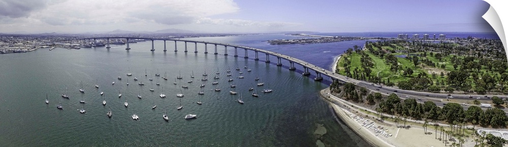<p>San Diego's Coronado Bridge is over 11,000' long and is an iconic landmark in San Diego joining the downtown area to Coronado Island. This is a 4 image aerial panoramic.</p>