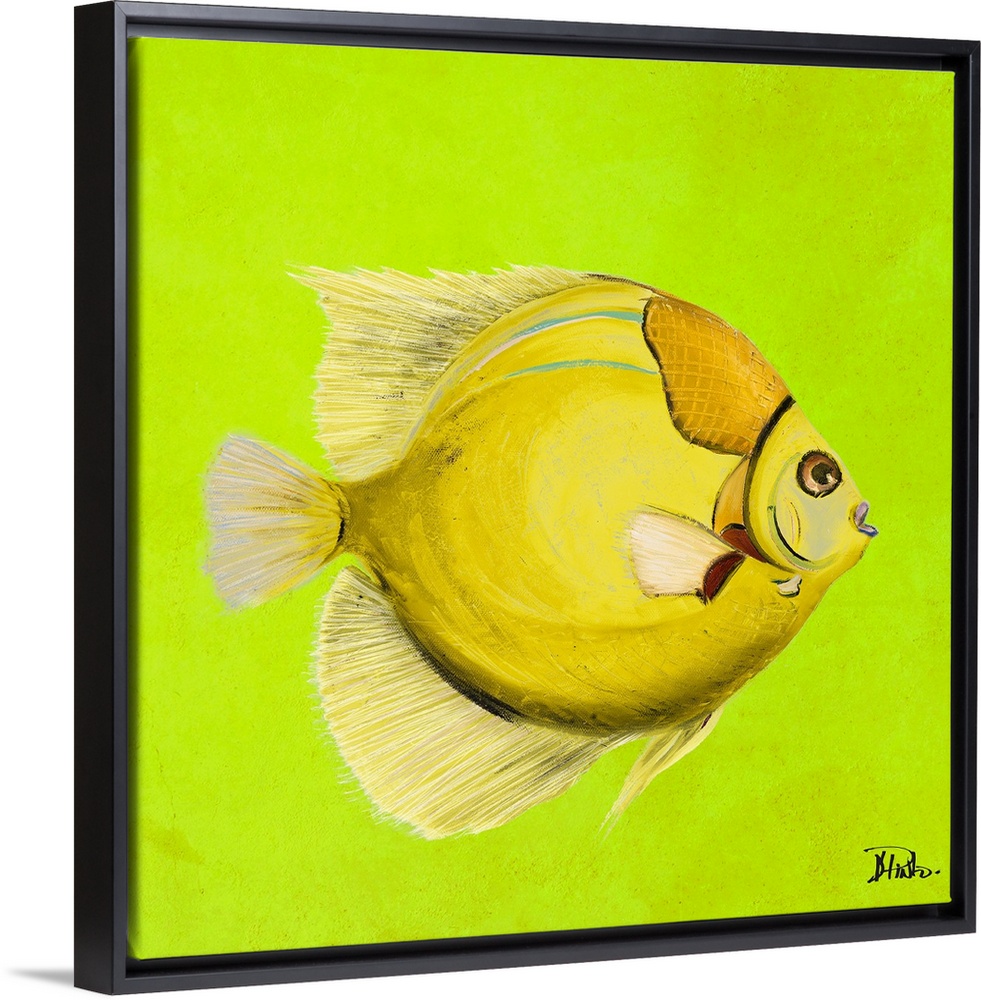 <p>Contemporary painting of a tropical fish against a bright green background.</p>