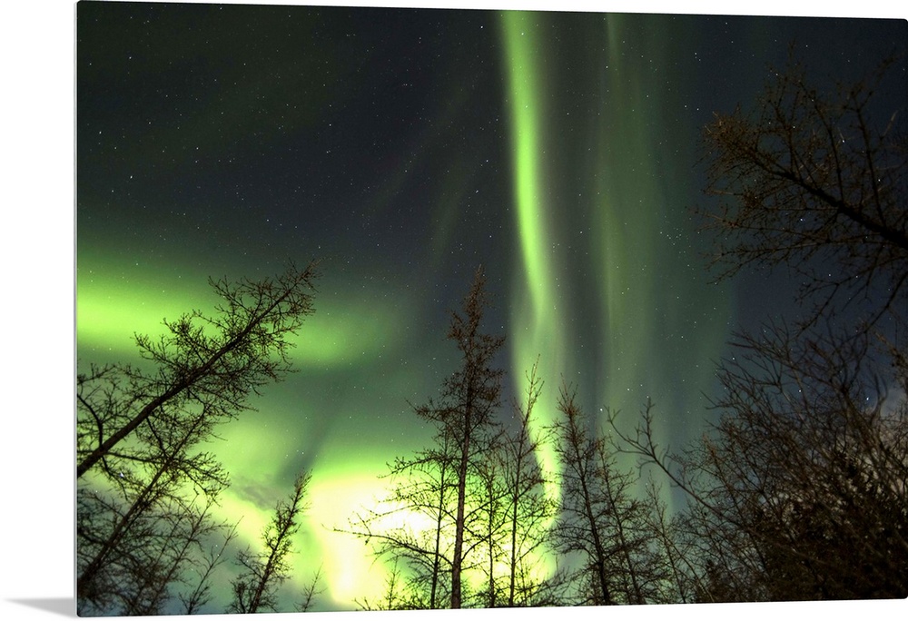 <p>Bright aurora borealis, Lake Laberge, Yukon, Canada.</p>