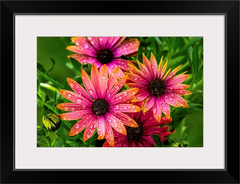 <p>Close up of a bunch of bright colourful flowers with water droplets; Calgary, Alberta, Canada</p>