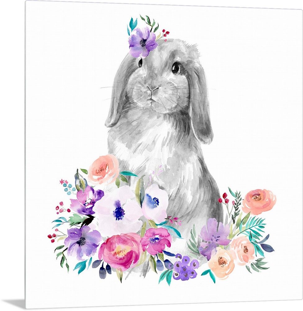 Art Decorative Art Florals Painting Jennifer Paxton Parker Purple Wall Art Watercolor Wildlife Rabbit