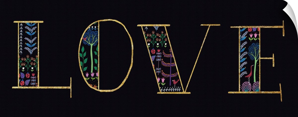 <p>"LOVE" with a floral design on a black background.</p>