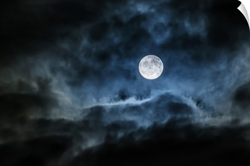 <p>Bright full moon glowing in a cloudy sky; Ontario, Canada</p>