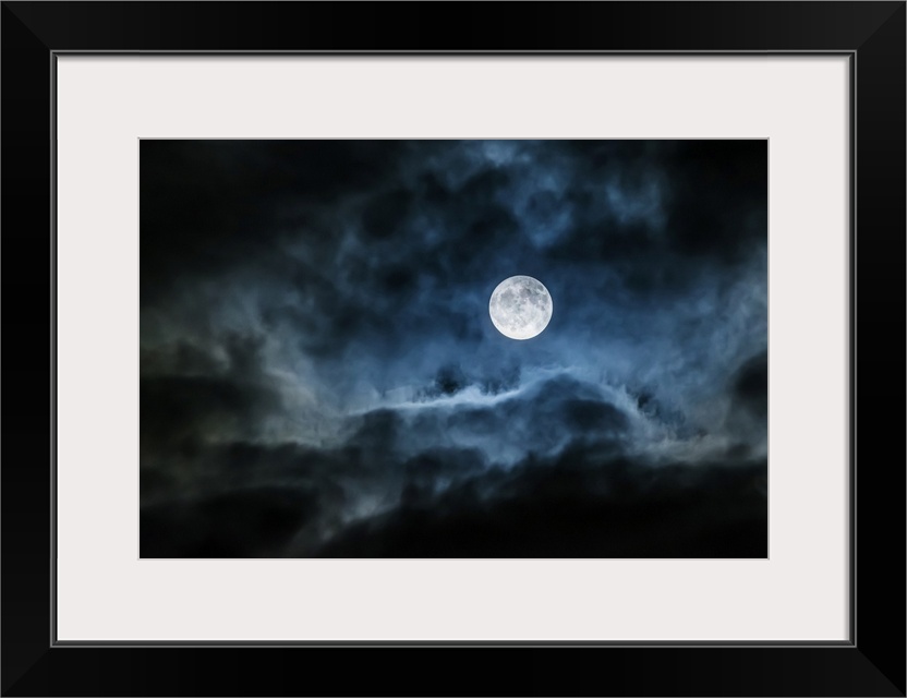 <p>Bright full moon glowing in a cloudy sky; Ontario, Canada</p>