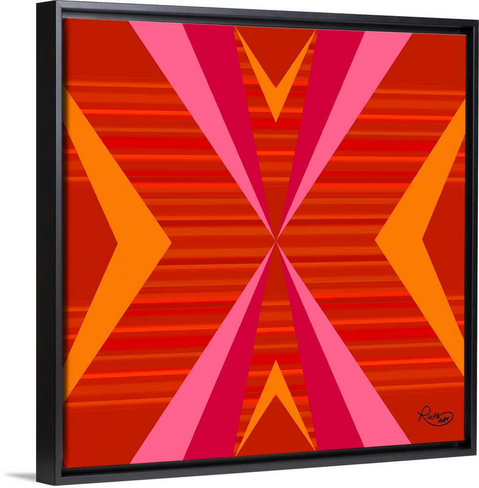 <p>Square abstract of striped diagonal lines in vibrant colors of pink, orange and red.</p>