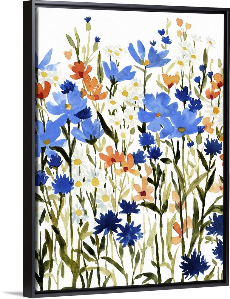 Art Blue Flowers Blue Wall Art Emma Caroline Contemporary Art Plants and Flowers Florals Daisy Wildflowers Painting Watercolor