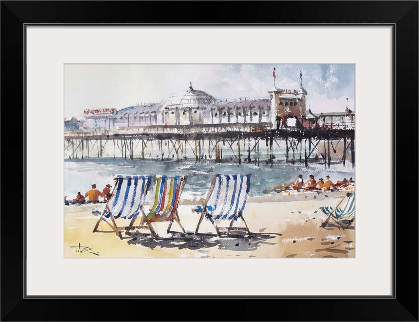 <p>Delicate beach chairs bring this beach scene to life in this contemporary watercolor.</p>
