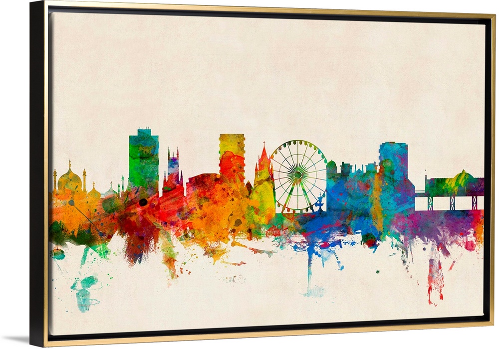<p>Contemporary piece of artwork of the Brighton skyline made of colorful paint splashes.</p>
