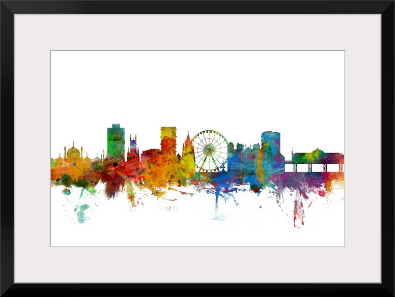 <p>Contemporary piece of artwork of the Brighton skyline made of colorful paint splashes.</p>