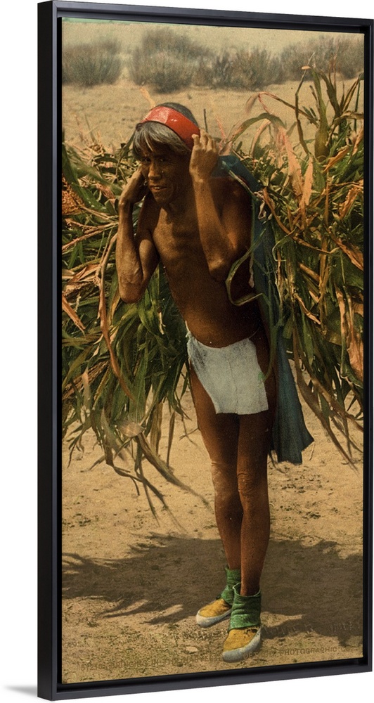 <p>Hand colored photograph of bringing in the harvest.</p>