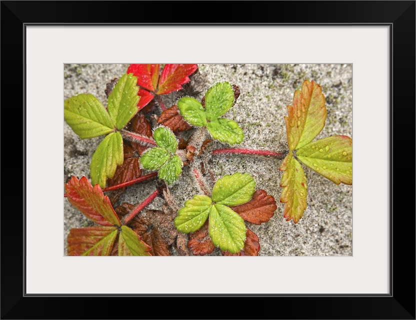 <p>Canada, British Columbia, Calvert Island. Colorful beach strawberry plant growing in sand. Credit as: Don Paulson / Jaynes Gallery / DanitaDelimont.com (RF)</p>
