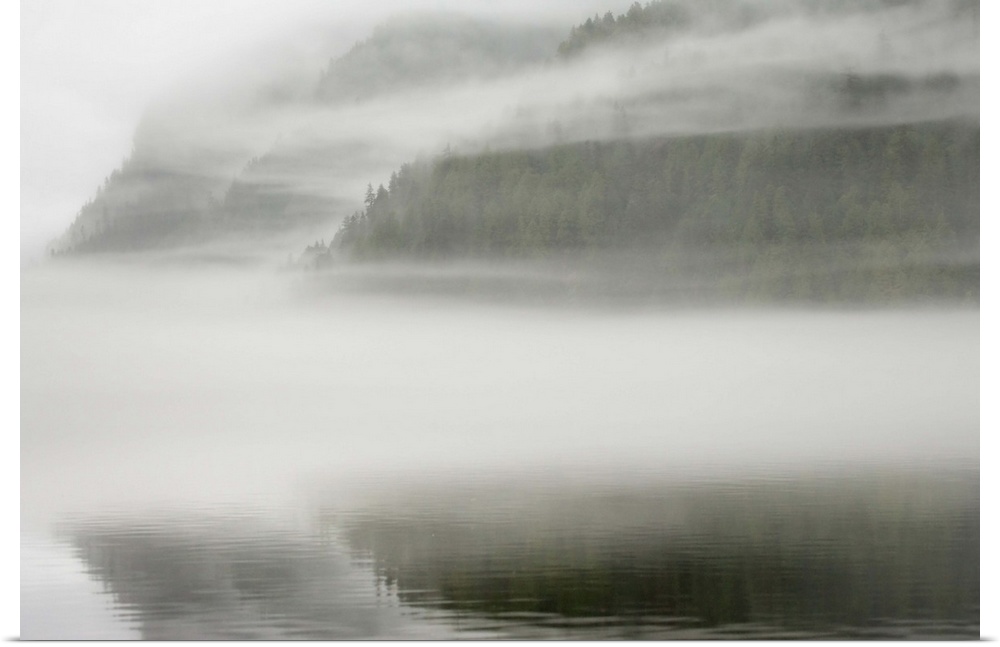 <p>Canada, British Columbia, Calvert Island. Mist and fog shroud water and forested island. Credit as: Don Paulson / Jaynes Gallery / DanitaDelimont.com (RF)</p>