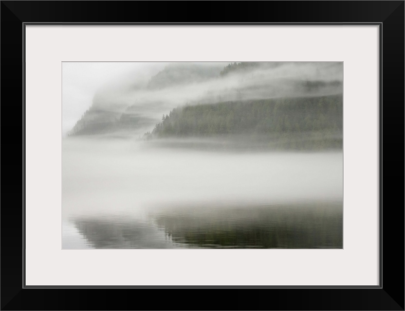 <p>Canada, British Columbia, Calvert Island. Mist and fog shroud water and forested island. Credit as: Don Paulson / Jaynes Gallery / DanitaDelimont.com (RF)</p>