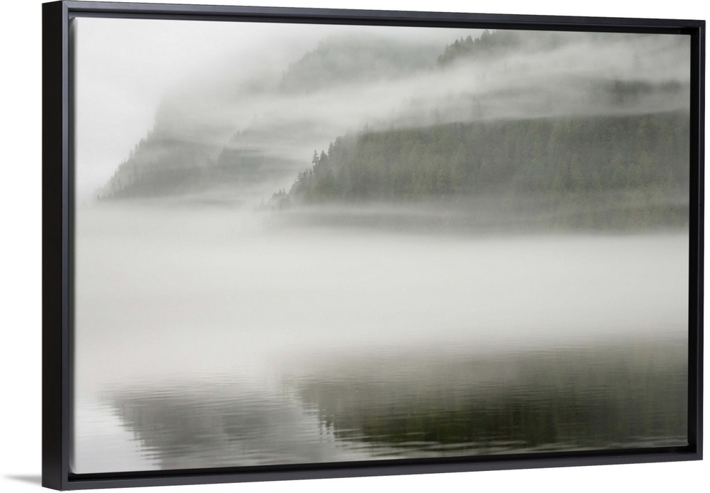 <p>Canada, British Columbia, Calvert Island. Mist and fog shroud water and forested island. Credit as: Don Paulson / Jaynes Gallery / DanitaDelimont.com (RF)</p>