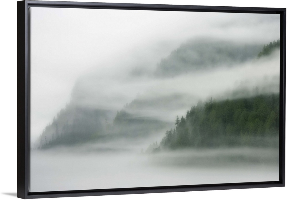 <p>Canada, British Columbia, Fiordland Recreation Area. Mist and fog shroud water and forested island. Credit as: Don Paulson / Jaynes Gallery / DanitaDelimont.com (RF).</p>