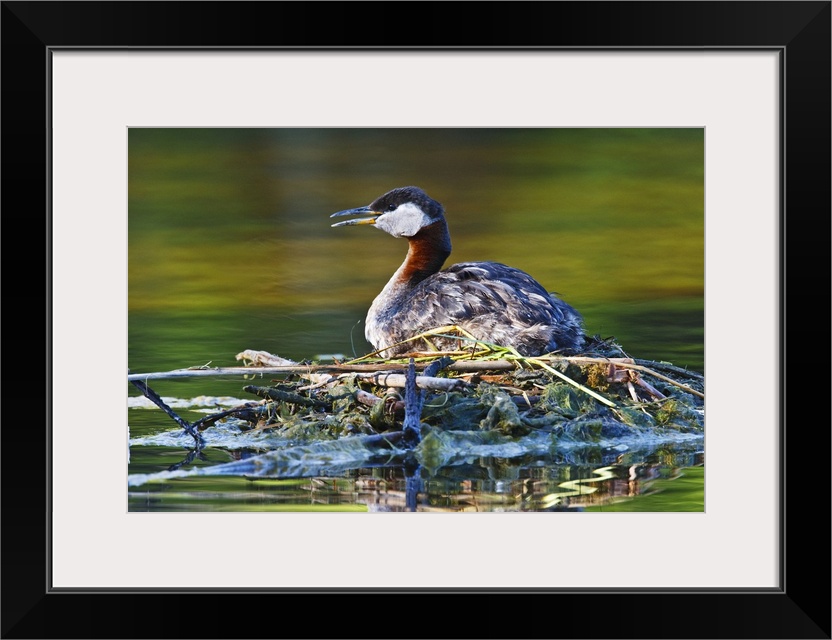 <p>North America, Canada, British Columbia, Red-necked Grebe (Podiceps grisegena) adult on nest, June</p>