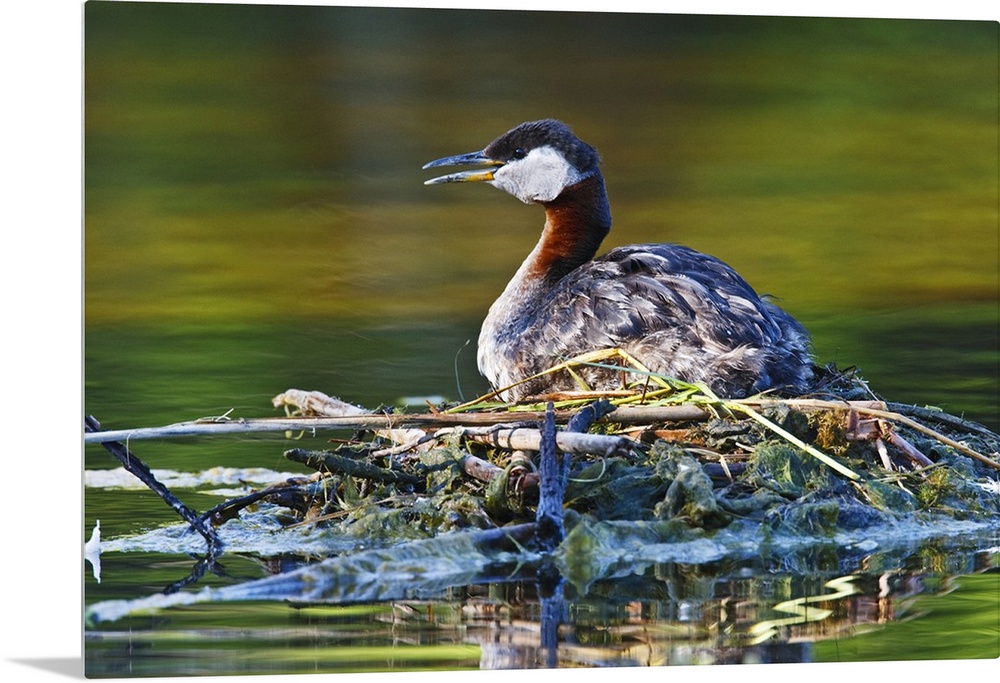 <p>North America, Canada, British Columbia, Red-necked Grebe (Podiceps grisegena) adult on nest, June</p>