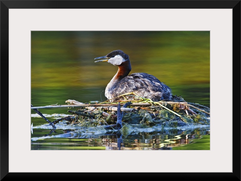 <p>North America, Canada, British Columbia, Red-necked Grebe (Podiceps grisegena) adult on nest, June</p>