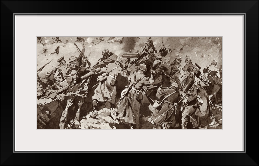 <p>British Troops Overrun German Trench During The Battle Of Neuve Chapelle On The Western Front, France, During The First World War. From The Illustrated War News Published 1915.</p>