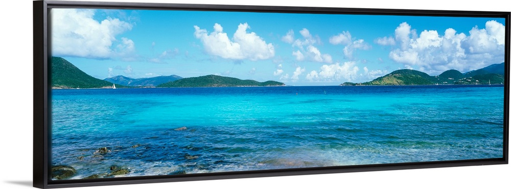<p>This wall art for the home or office is a panoramic photograph of a tropical beach surrounded by small islands.</p>