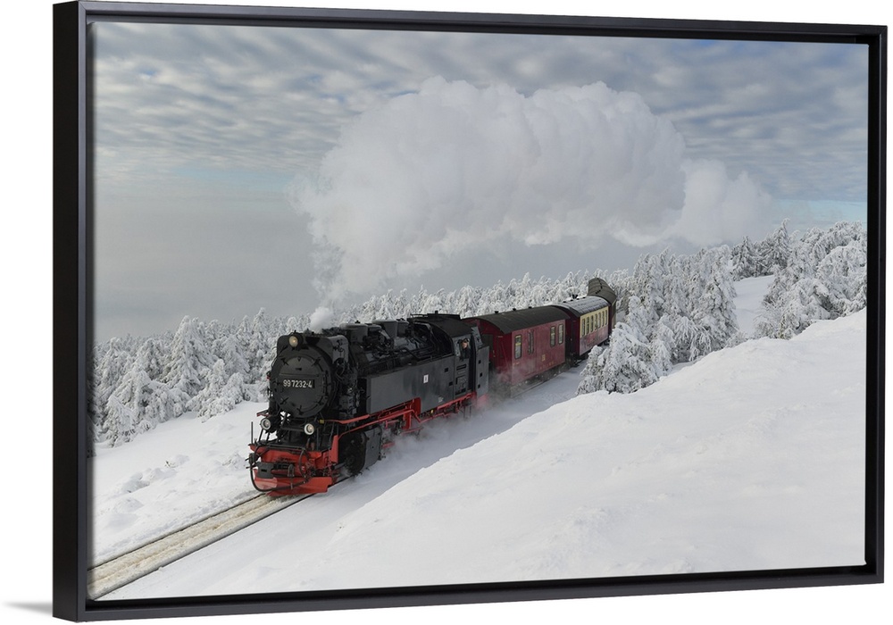 <p>Brockenbahn on the way to the winter snow-covered Brocken, Harz, Schierke, Saxony-Anhalt, Germany, Europe.</p>