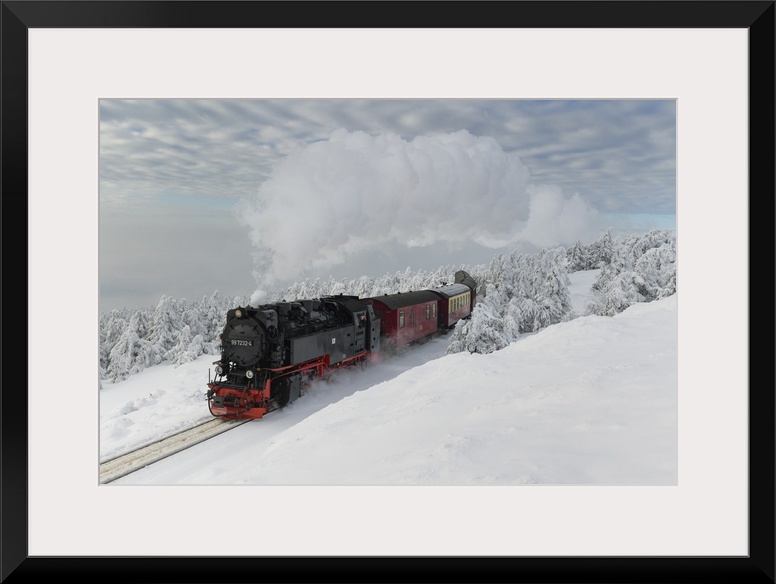 <p>Brockenbahn on the way to the winter snow-covered Brocken, Harz, Schierke, Saxony-Anhalt, Germany, Europe.</p>