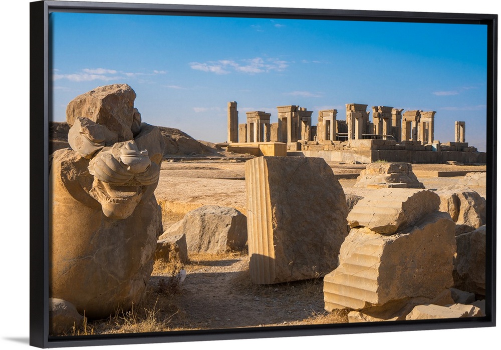 <p>Broken bull column in foreground, Persepolis, UNESCO World Heritage Site, Iran, Middle East</p>