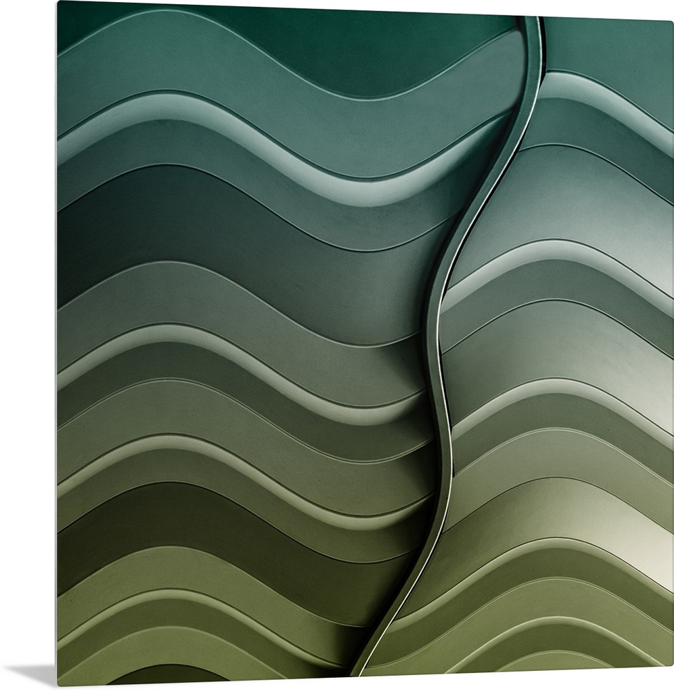 <p>Waves in the side of a building bisected by a thin line.</p>