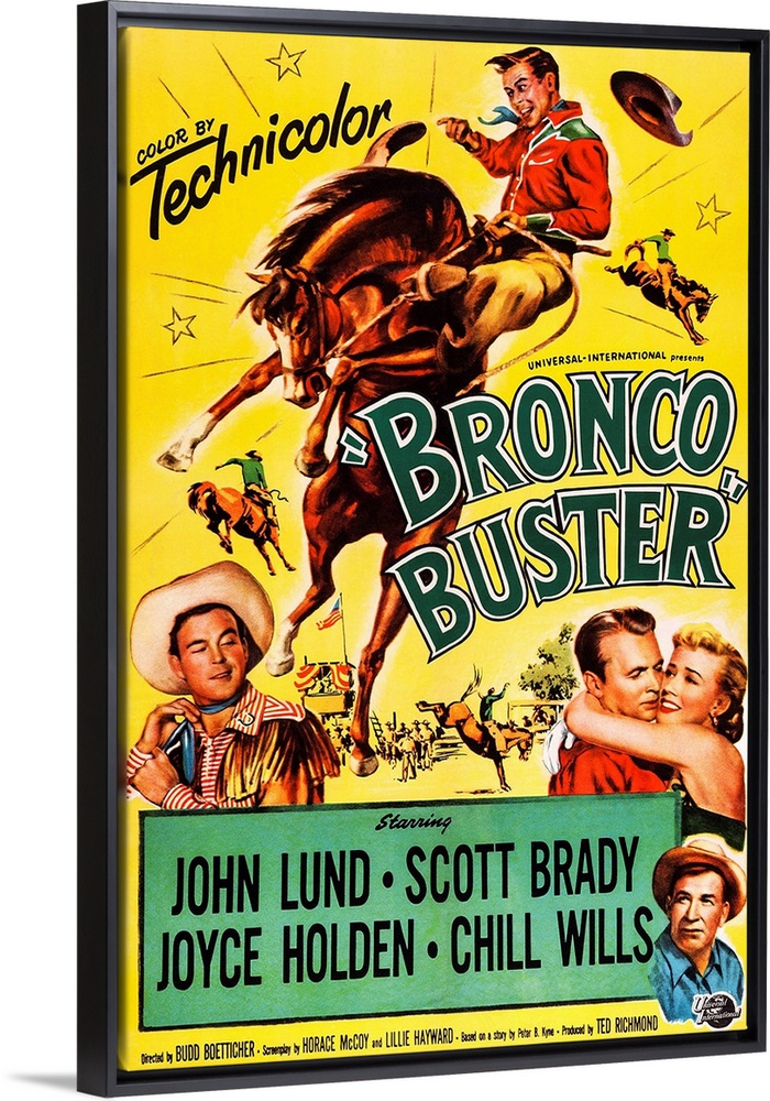 <p>BRONCO BUSTER, US poster art from left, Scott Brady, John Lund, Joyce Holden, Chill Wills, 1952</p>