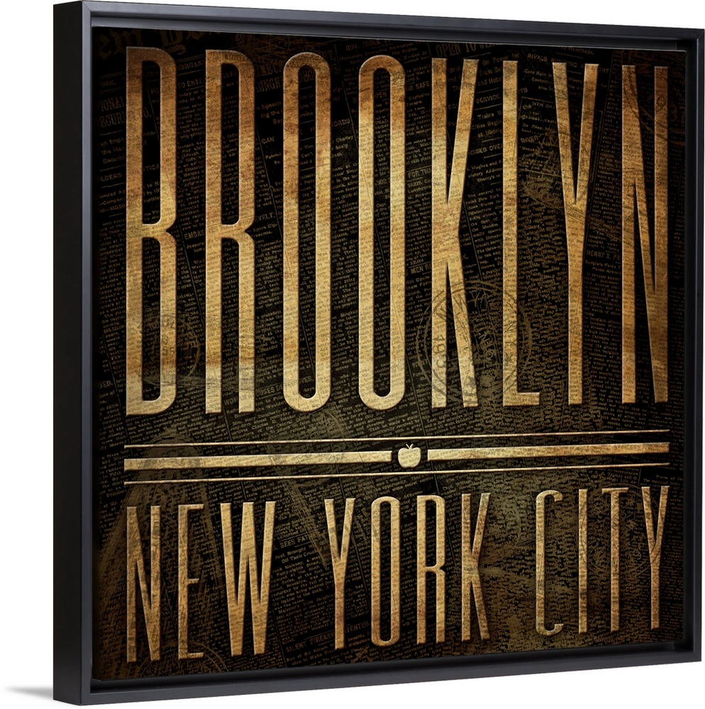 <p>Typographical travel art with the text "Brooklyn, New York City" in a rustic, weathered look.</p>