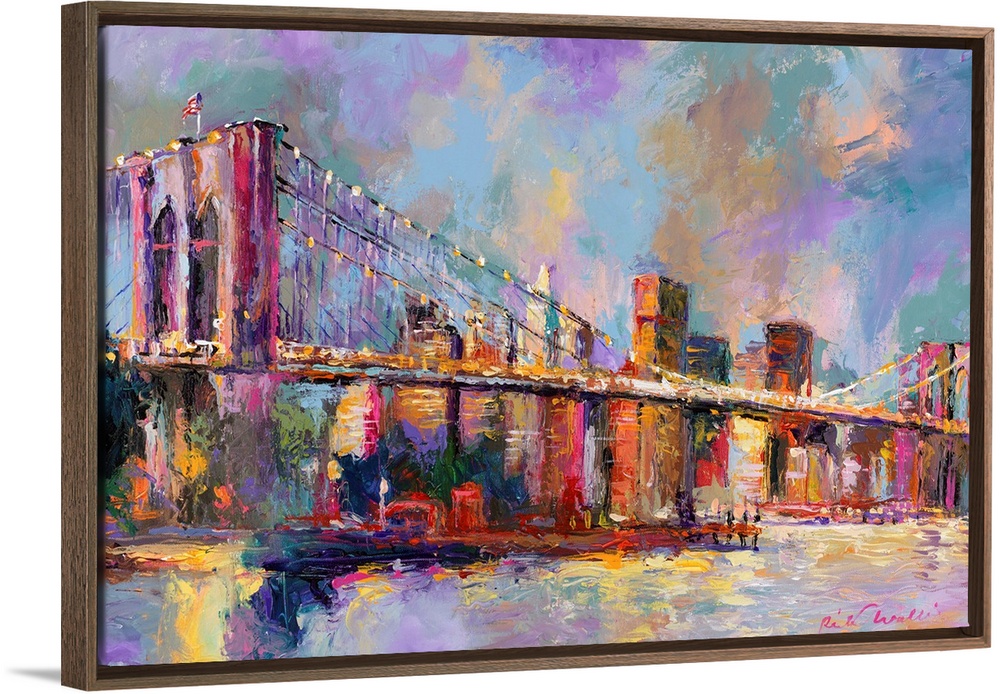 Architecture Bridge Art Contemporary and Modern Cityscapes City Skylines Contemporary Art Multicolor Wall Art Painting New York Brooklyn Brooklyn Bridge Richard Wallich