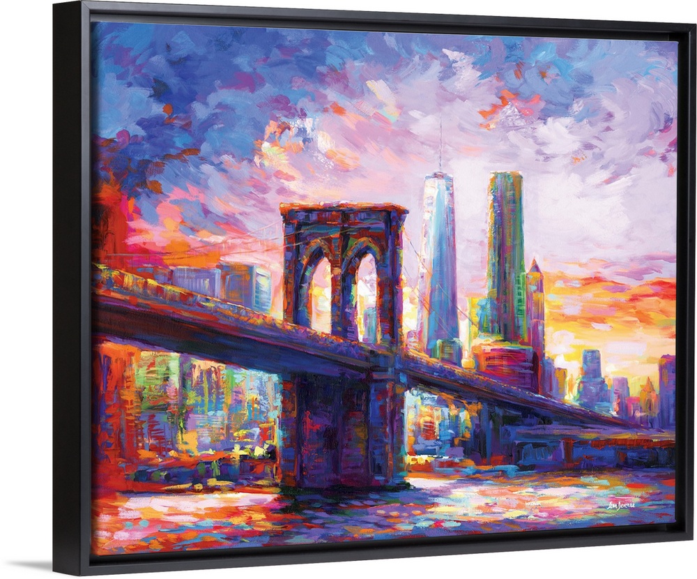 Bridge Art Contemporary and Modern Cityscapes Contemporary Art Leon Devenice Painting Purple Wall Art United States New York New York City Brooklyn Bridge Manhattan