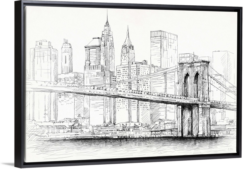 <p>Contemporary illustrative home decor artwork of the Brooklyn Bridge with the Manhattan skyline in the background.</p>