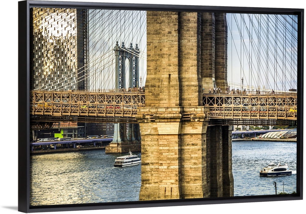 <p>USA, New York City, Brooklyn, Detail of Brooklyn Bridge and Manhattan Bridge in background</p>