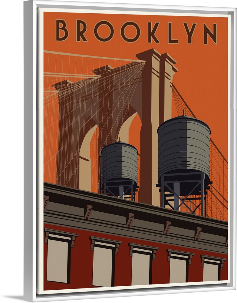 Architecture Art Contemporary Art Graphic Art Minimalist Art Orange Wall Art Retro Art Brooklyn Brooklyn Bridge Steve Thomas Travel Posters Retro Travel Posters