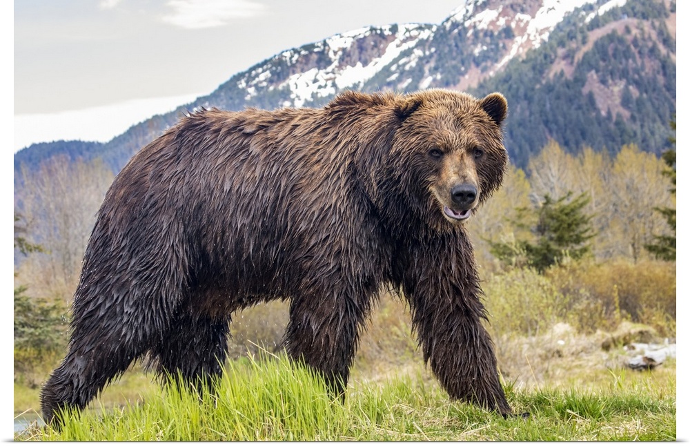 <p>Brown bear (Ursus arctos) boar, large male looks at camera, Alaska Wildlife Conservation Center, South-central Alaska; Alaska, United States of America</p>