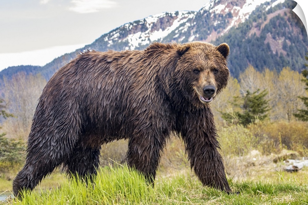 <p>Brown bear (Ursus arctos) boar, large male looks at camera, Alaska Wildlife Conservation Center, South-central Alaska; Alaska, United States of America</p>