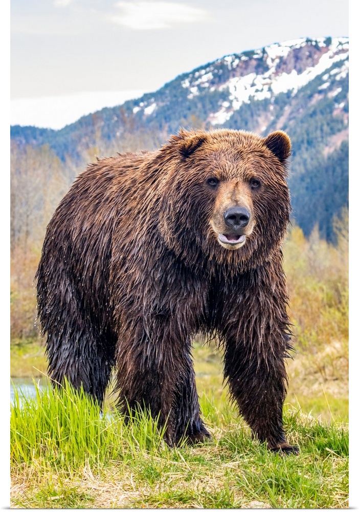 <p>Brown bear (ursus arctos) boar, large male looks at camera, Alaska wildlife conservation center, south-central Alaska, Alaska, united states of America.</p>